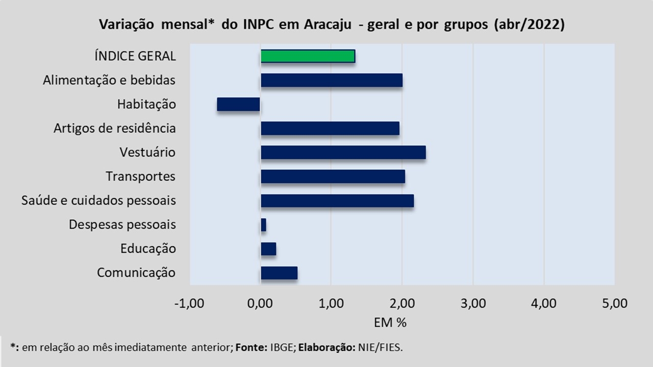 Para esse público, a pesquisa é feita através do Índice Nacional de Preços ao Consumidor (INPC), que registrou inflação de 1,33%, em abril de 2022. O intervalo de comparação é o mesmo do IPCA descrito acima.