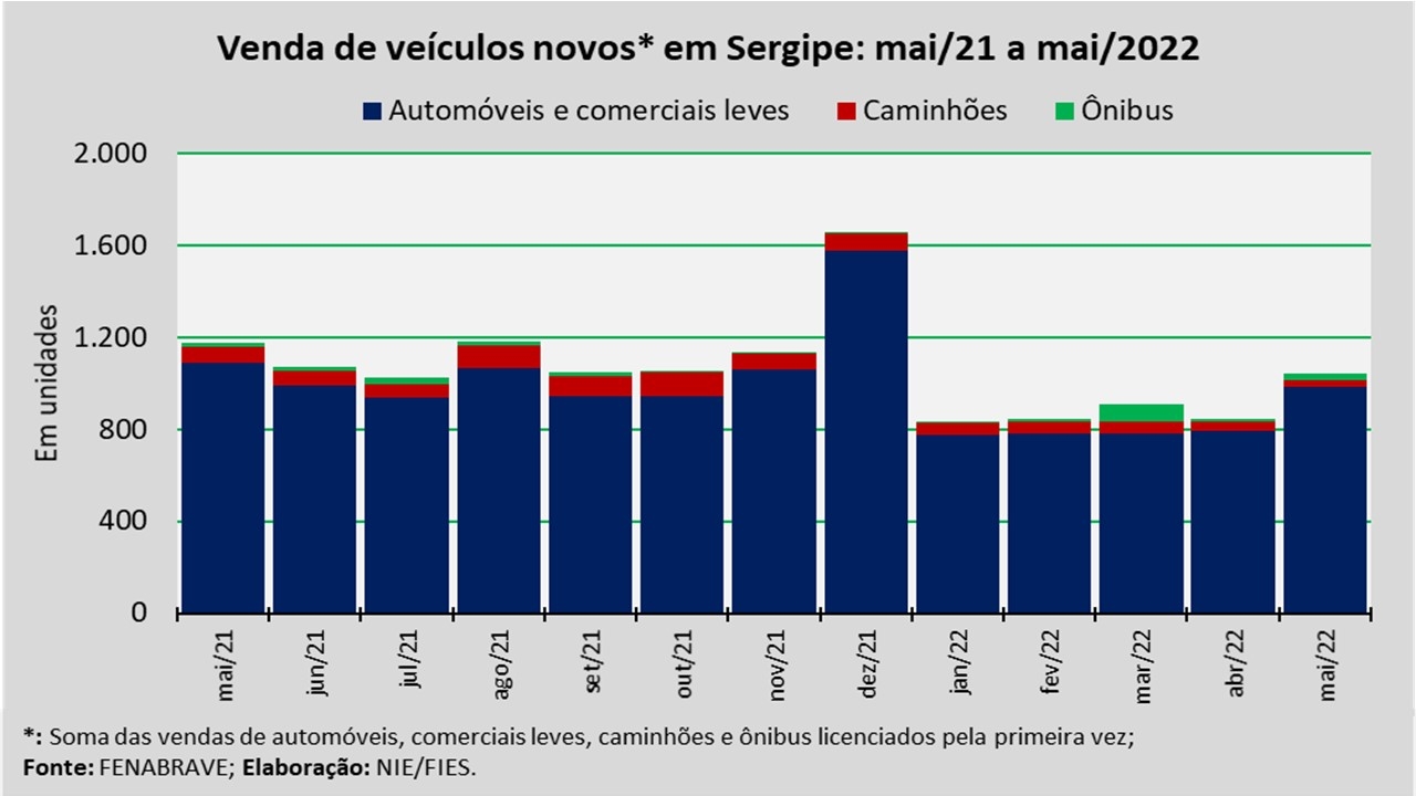 Análise realizada pelo Núcleo de Informações Econômicas (NIE) da Federação das Indústrias do Estado de Sergipe (FIES), com base nos dados da Federação Nacional da Distribuição de Veículos Automotores (FENABRAVE), apontou que as vendas de veículos novos no estado, no mês de maio, totalizaram 1.041 unidades.