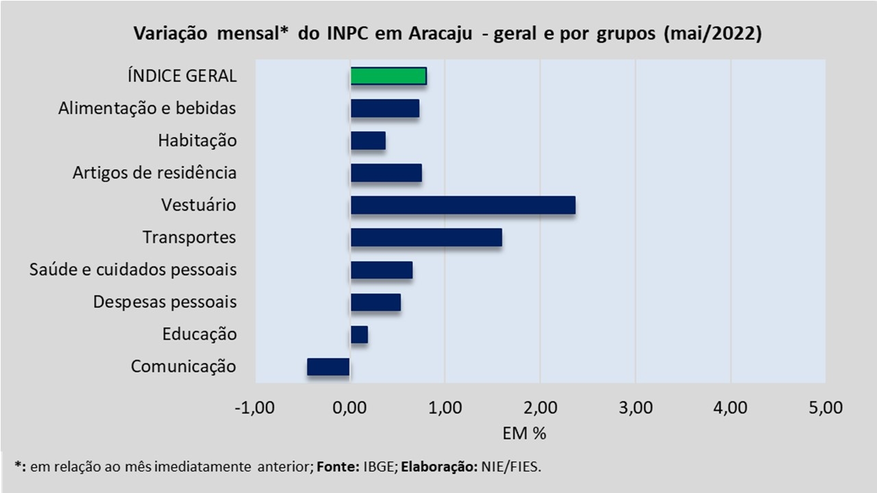 Para esse público, a pesquisa é feita através do Índice Nacional de Preços ao Consumidor (INPC), que registrou inflação de 0,80%, em maio de 2022. O intervalo de comparação é o mesmo do IPCA descrito acima.