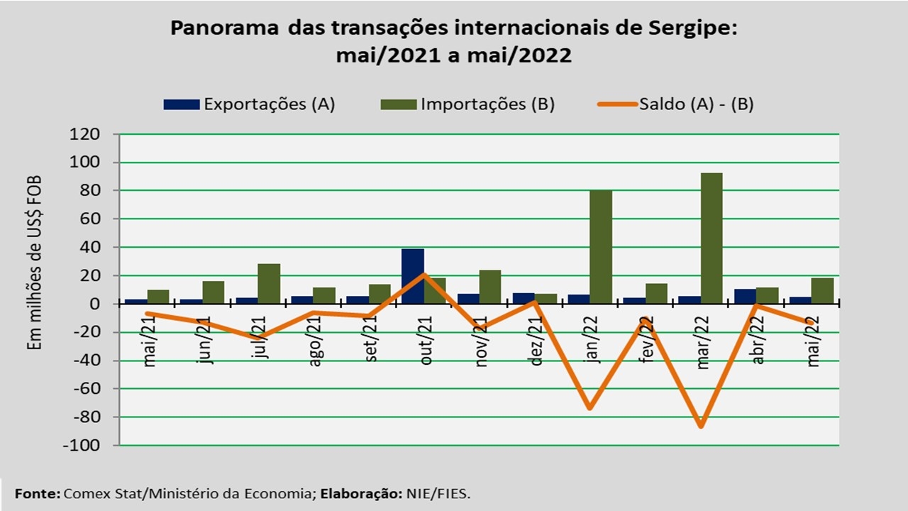 Importações sergipanas em maio/2022