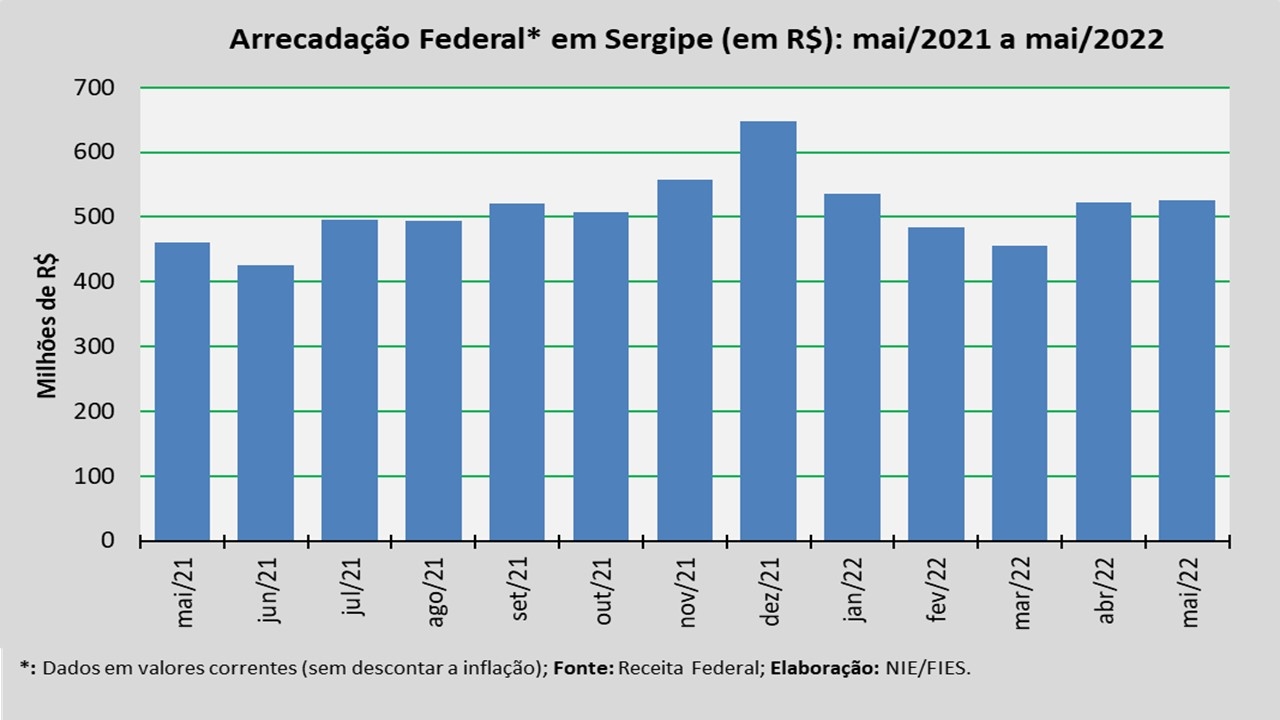 Detalhes da Arrecadação Federal de maio/2022 em Sergipe