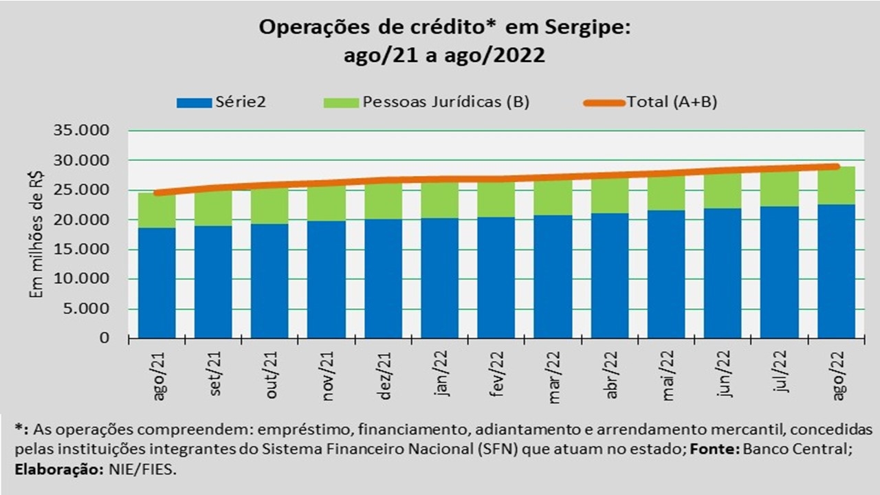 Análise realizada pelo Núcleo de Informações Econômicas da Federação das Indústrias do Estado de Sergipe (FIES), com base nos dados do Banco Central, revelou que o saldo total das operações de crédito em Sergipe, em agosto do ano corrente, somou R$ 28,9 bilhões, registrando o maior valor da série histórica iniciada em 2004.