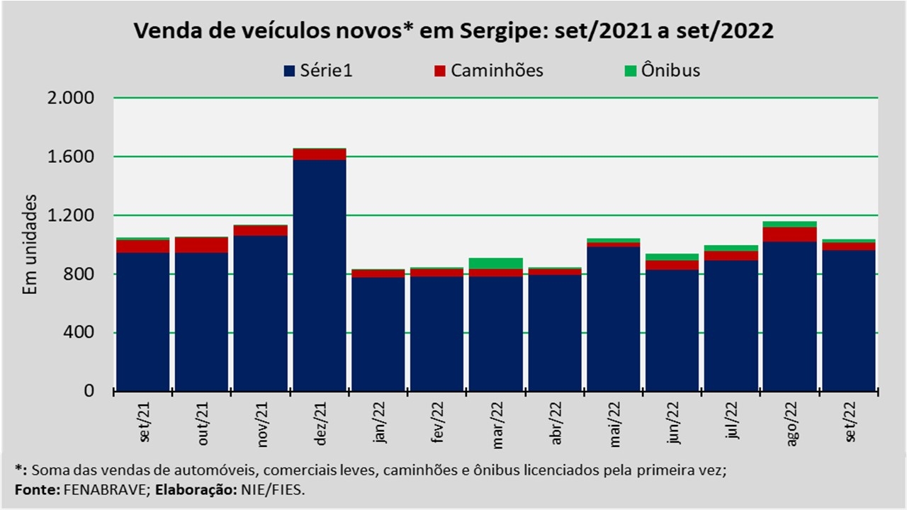 Análise realizada pelo Núcleo de Informações Econômicas (NIE) da Federação das Indústrias do Estado de Sergipe (FIES), com base nos dados da Federação Nacional da Distribuição de Veículos Automotores (FENABRAVE), apontou que as vendas de veículos novos no estado, no mês de setembro, totalizaram 1.036 unidades.