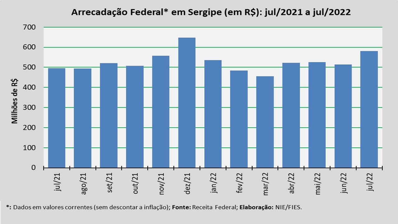 Detalhes da Arrecadação Federal de julho/2022 em Sergipe