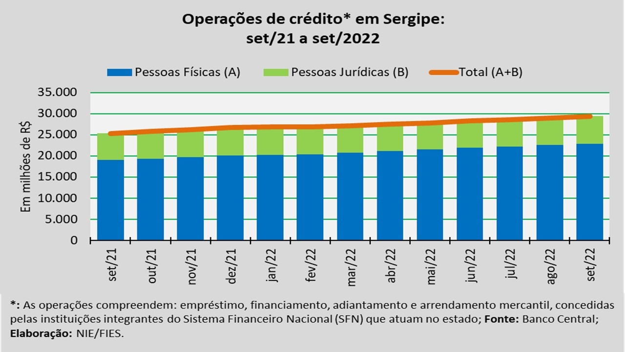 As operações compreendem: empréstimo, financiamento, adiantamento e arrendamento mercantil, concedidas pelas instituições integrantes do Sistema Financeiro Nacional (SFN) que atuam no estado.