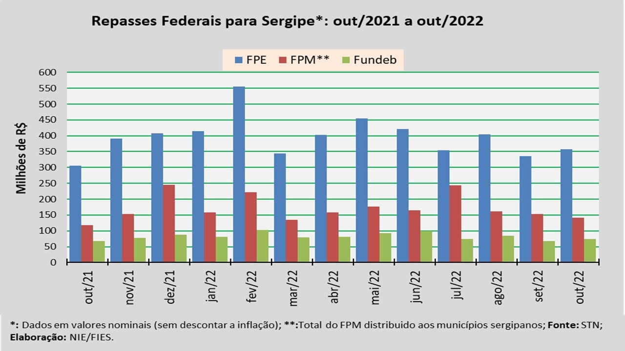 Análise realizada pelo Núcleo de Informações Econômicas da Federação das Indústrias do Estado de Sergipe (FIES), com base nos dados da Secretaria do Tesouro Nacional (STN), indicou que o repasse do Fundo de Participação dos Estados (FPE) para Sergipe, em outubro do ano corrente, foi de R$ 357,5 milhões.
