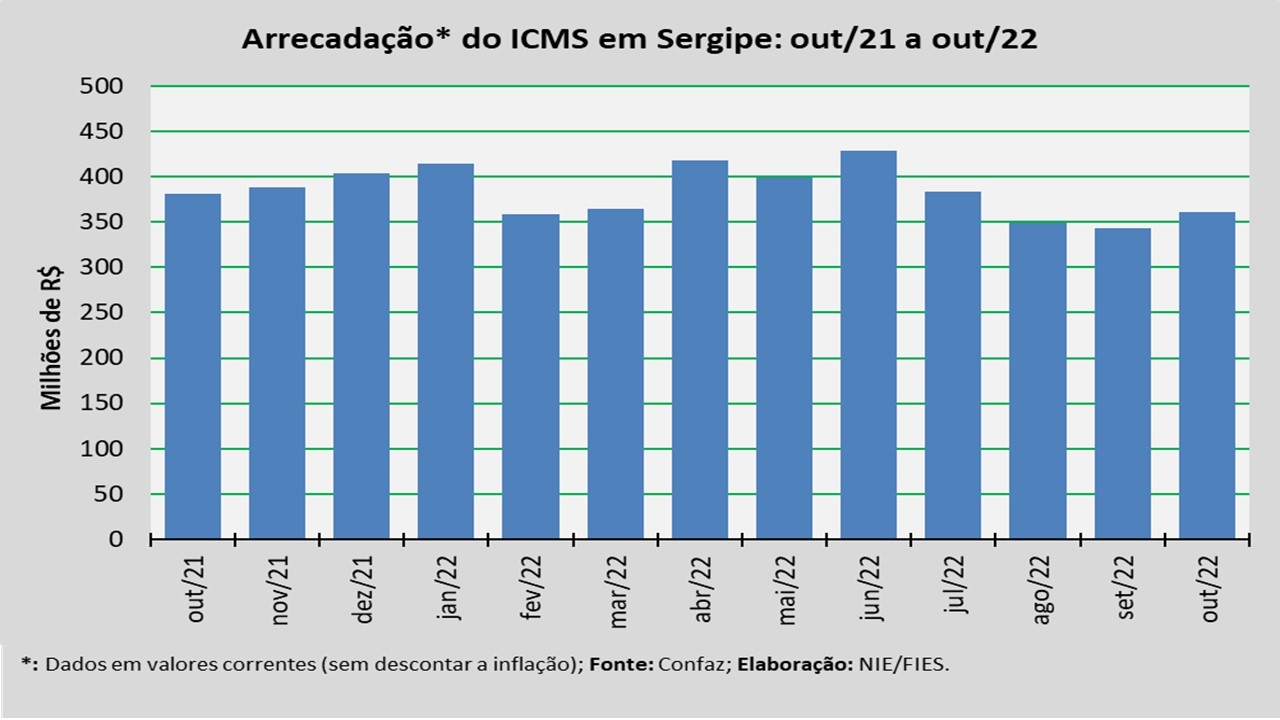 Arrecadação do ICMS em Sergipe – outubro/2022 | |