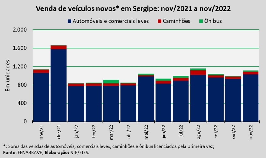 Análise realizada pelo Núcleo de Informações Econômicas (NIE) da Federação das Indústrias do Estado de Sergipe (FIES), com base nos dados da Federação Nacional da Distribuição de Veículos Automotores (FENABRAVE), apontou que as vendas de veículos novos no estado, no mês de novembro, totalizaram 1.114 unidades.