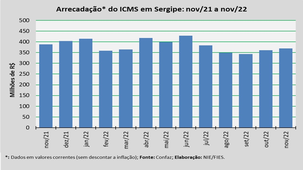 Arrecadação do ICMS em Sergipe – novembro/2022 | |