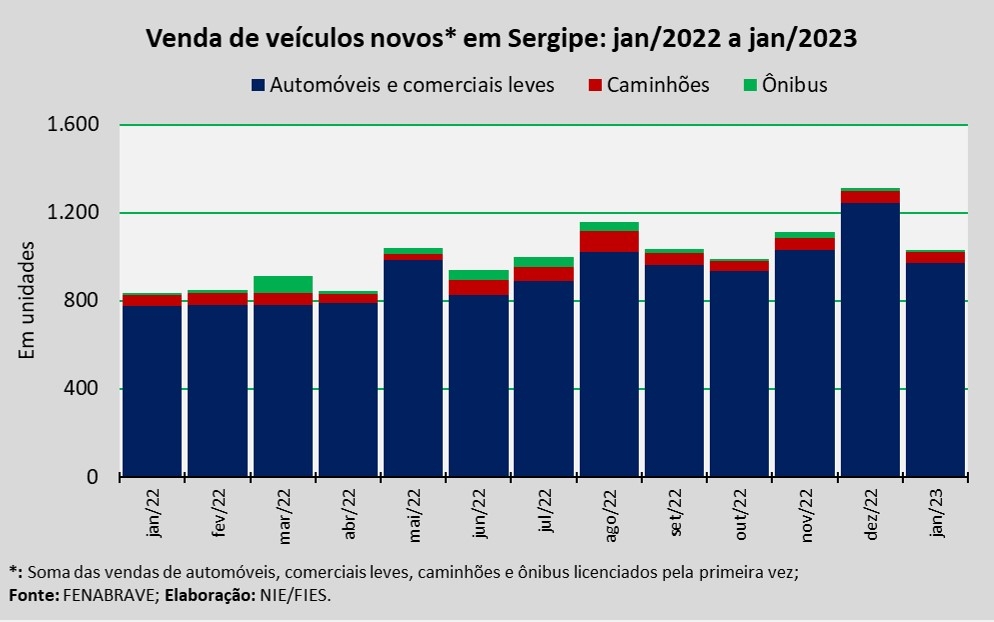 Análise realizada pelo Núcleo de Informações Econômicas (NIE) da Federação das Indústrias do Estado de Sergipe (FIES), com base nos dados da Federação Nacional da Distribuição de Veículos Automotores (FENABRAVE), apontou que as vendas de veículos novos no estado, no mês de janeiro, totalizaram 1.028 unidades.