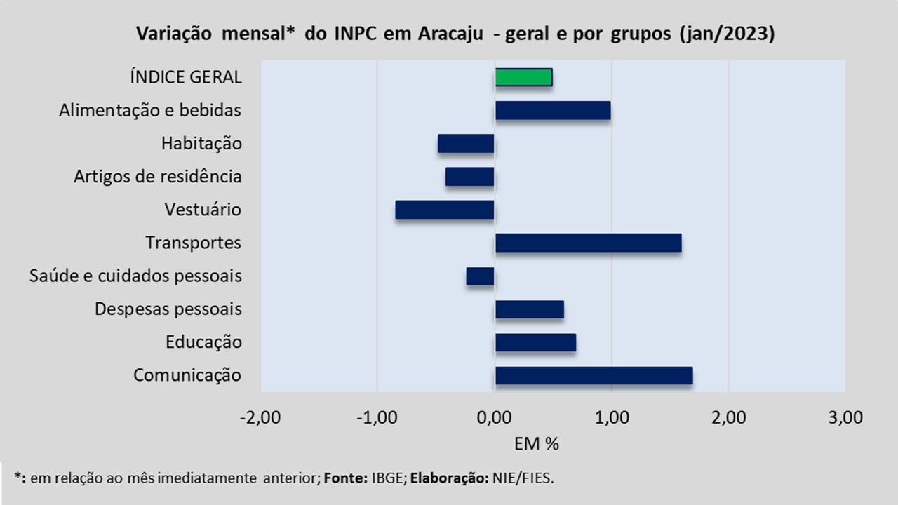 Para esse público, a pesquisa é feita através do Índice Nacional de Preços ao Consumidor (INPC), que registrou inflação de 0,49%, em janeiro de 2023. O intervalo de comparação é o mesmo do IPCA descrito acima.