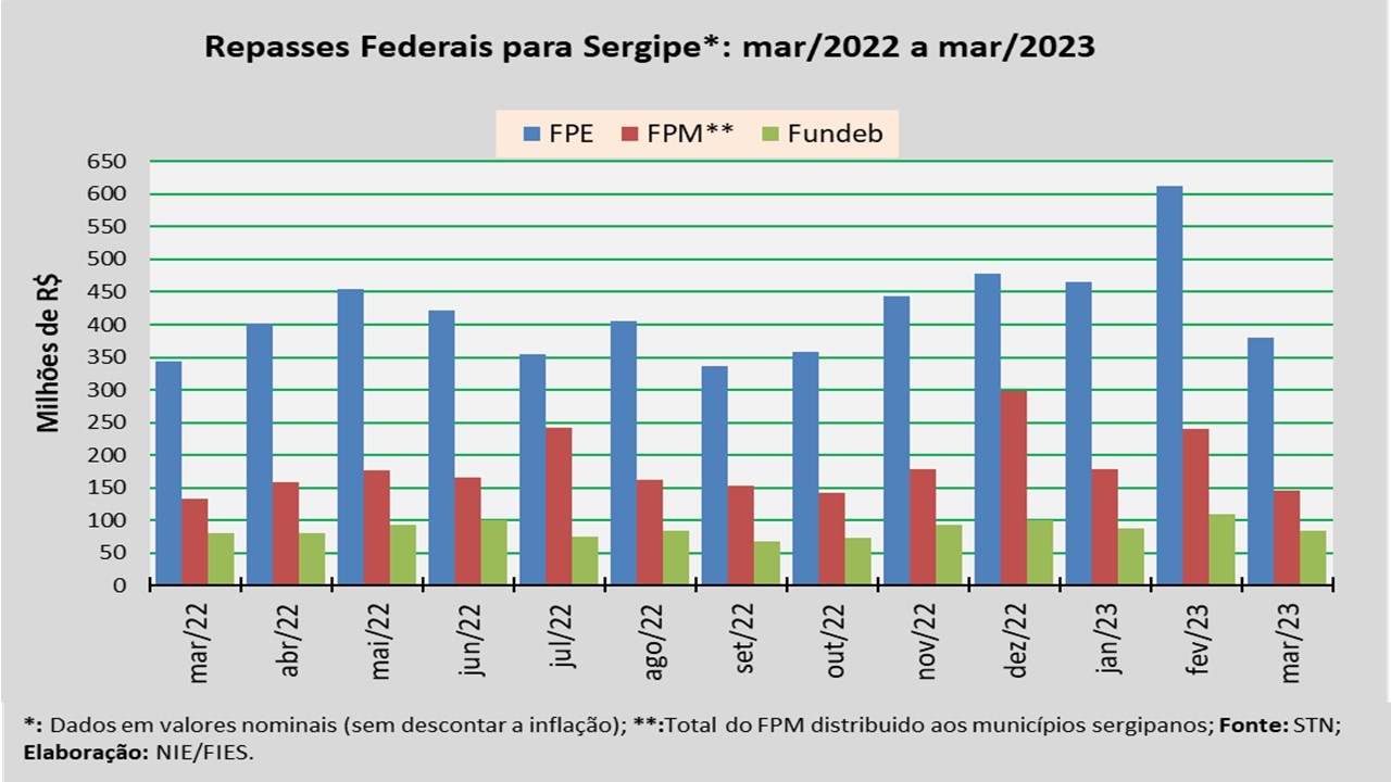 Análise realizada pelo Núcleo de Informações Econômicas da Federação das Indústrias do Estado de Sergipe (FIES), com base nos dados da Secretaria do Tesouro Nacional (STN), indicou que o repasse do Fundo de Participação dos Estados (FPE) para Sergipe, em março do ano corrente, foi de R$ 379,4 milhões.