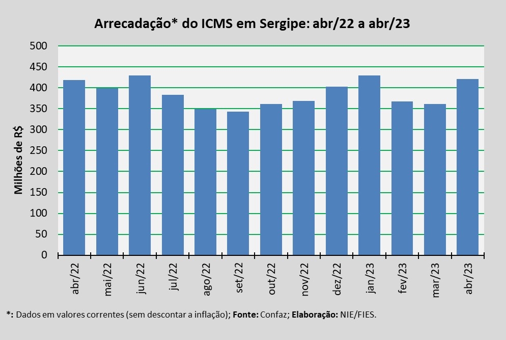 Arrecadação do ICMS em Sergipe – abril 2023 | |