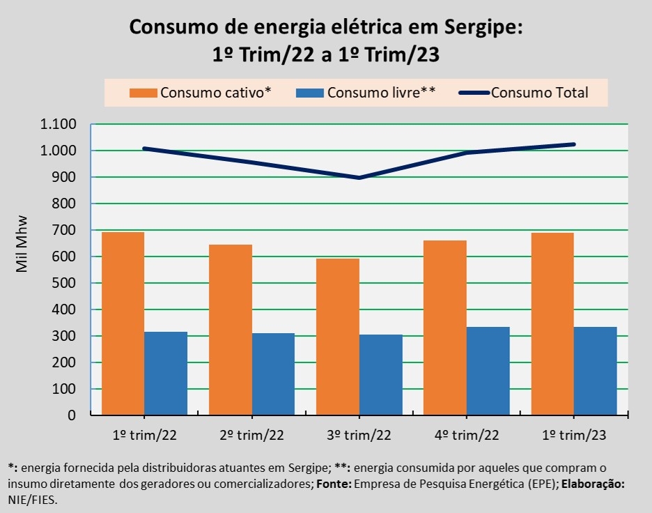 Da quantidade total de energia consumida no primeiro trimestre do ano, 67,4% ou 688,8 mil MWh foi proveniente do mercado cativo. Nesse mercado, a energia é fornecida exclusivamente pelas distribuidoras instaladas em Sergipe, com o preço e as demais condições de fornecimento reguladas pela Agência Nacional de Energia Elétrica (ANEEL).