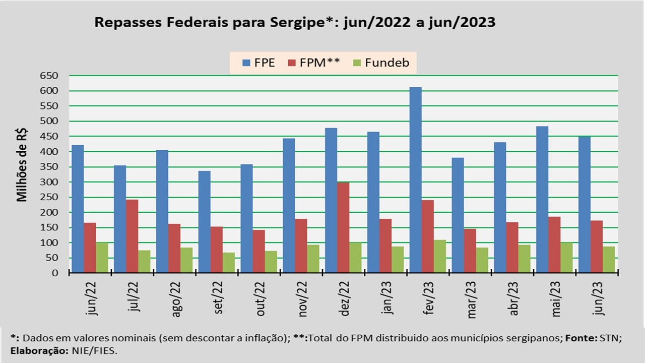 Análise realizada pelo Núcleo de Informações Econômicas da Federação das Indústrias do Estado de Sergipe (FIES), com base nos dados da Secretaria do Tesouro Nacional (STN), indicou que o repasse do Fundo de Participação dos Estados (FPE) para Sergipe, em junho do ano corrente, foi cerca de R$ 449,1 milhões.