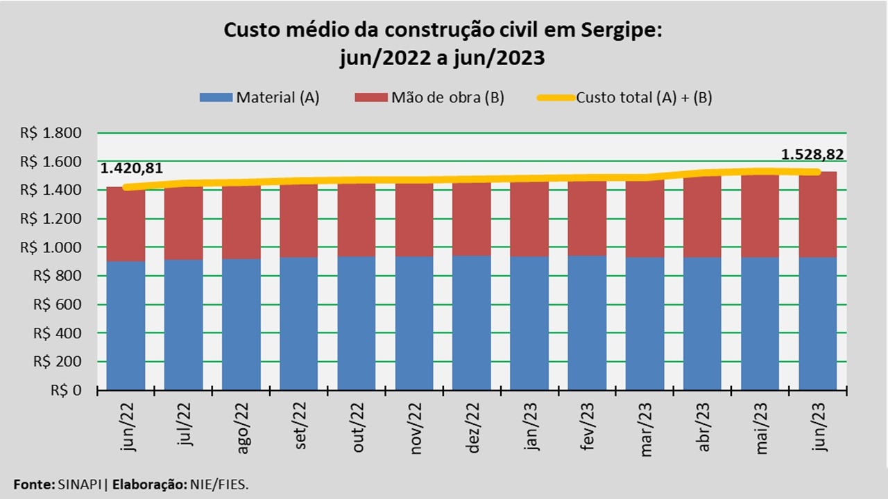 Análise realizada pelo Núcleo de Informações Econômicas da Federação das Indústrias do Estado de Sergipe (FIES), com base nos dados do Sistema Nacional de Pesquisa de Custos e Índices da Construção Civil – SINAPI, uma produção conjunta do IBGE e da Caixa Econômica Federal, revelou que o custo médio da construção em Sergipe, por metro quadrado (m²), em junho deste ano, registrou redução de 0,1%, quando comparado com o mês imediatamente anterior, maio último. Na comparação com o mês de junho do ano passado, o custo registrado apresentou crescimento de 7,6%.