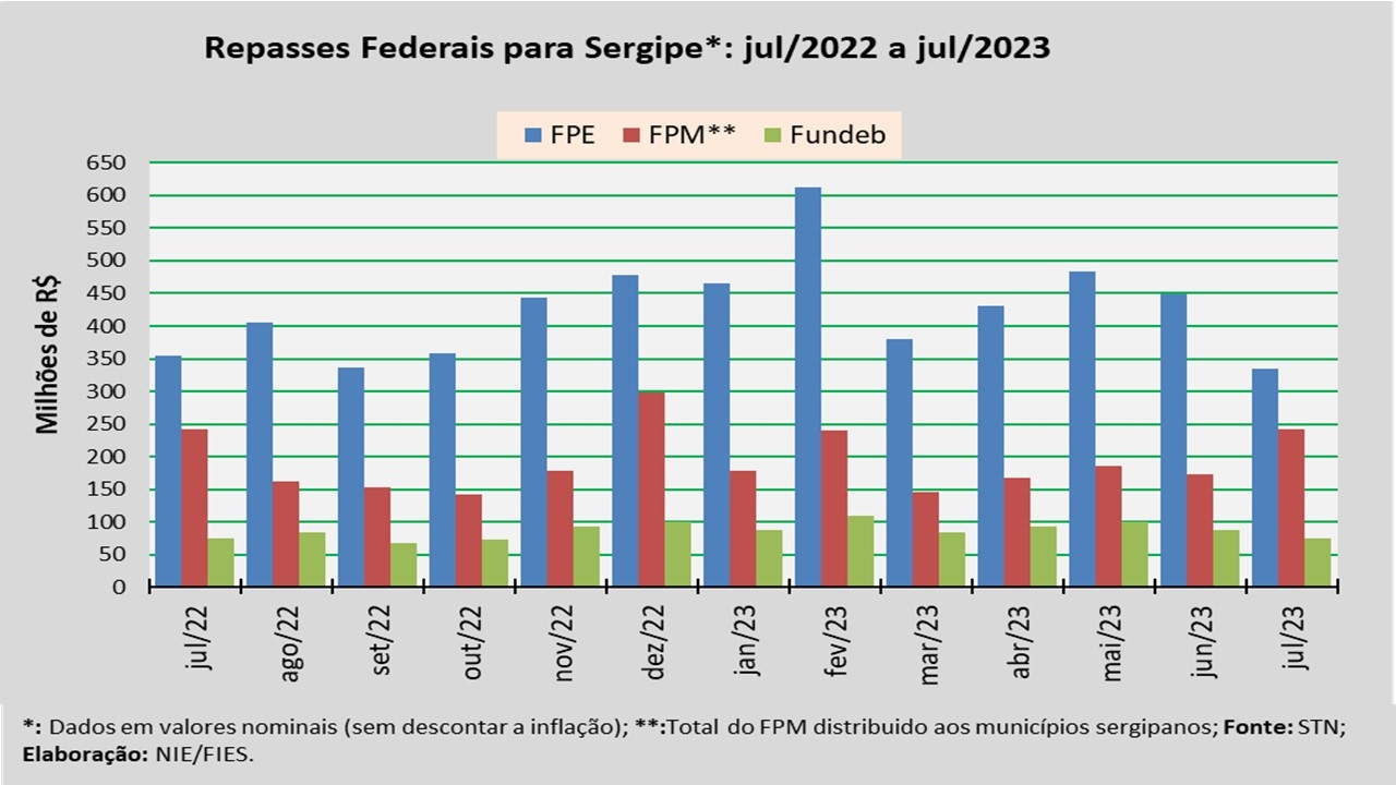 Análise realizada pelo Núcleo de Informações Econômicas da Federação das Indústrias do Estado de Sergipe (FIES), com base nos dados da Secretaria do Tesouro Nacional (STN), indicou que o repasse do Fundo de Participação dos Estados (FPE) para Sergipe, em julho do ano corrente, foi cerca de R$ 334,4 milhões.