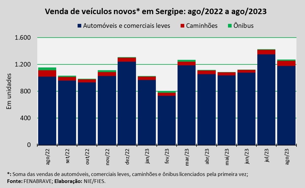 Análise realizada pelo Núcleo de Informações Econômicas (NIE) da Federação das Indústrias do Estado de Sergipe (FIES), com base nos dados da Federação Nacional da Distribuição de Veículos Automotores (FENABRAVE), apontou que as vendas de veículos novos no estado, no mês de agosto, totalizaram 1.276 unidades.