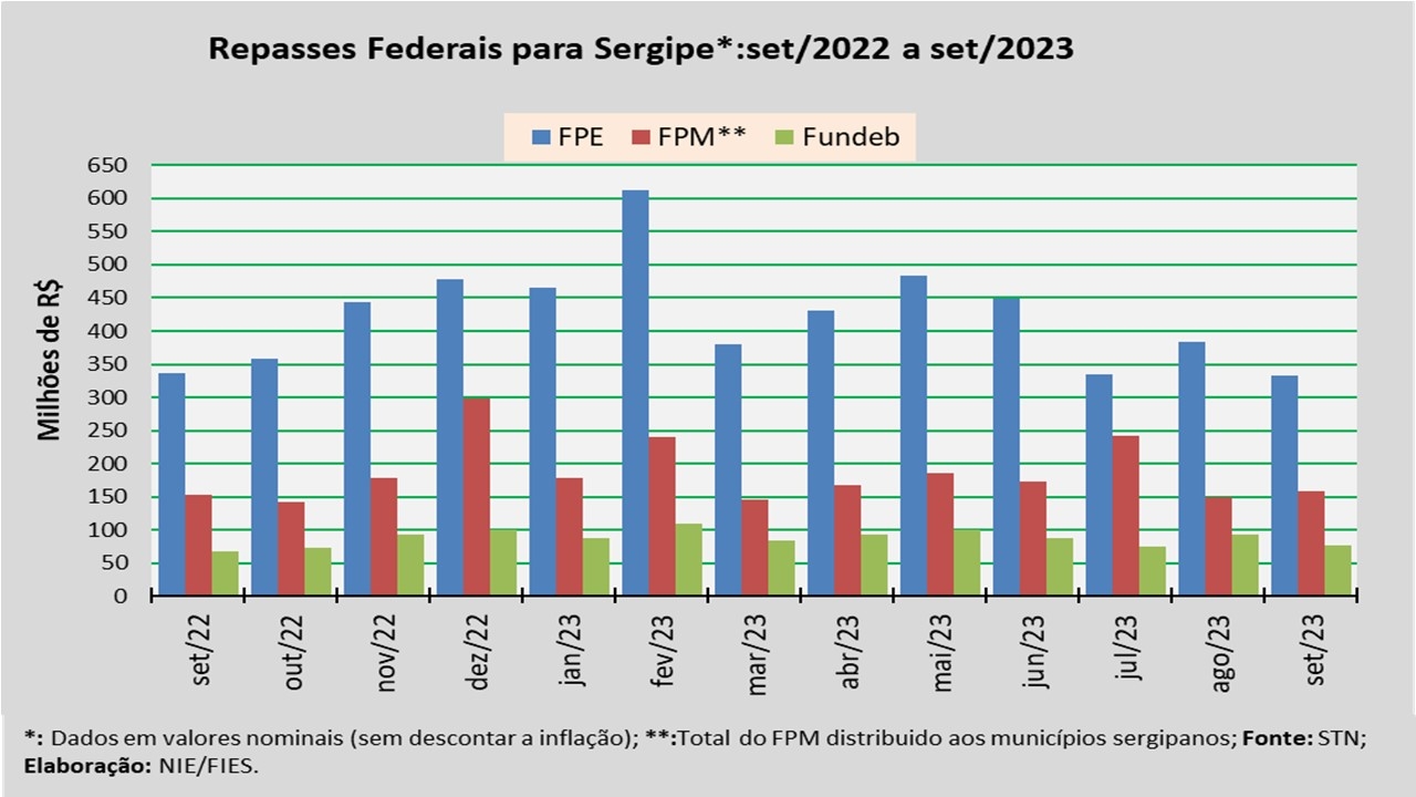 Análise realizada pelo Núcleo de Informações Econômicas da Federação das Indústrias do Estado de Sergipe (FIES), com base nos dados da Secretaria do Tesouro Nacional (STN), indicou que o repasse do Fundo de Participação dos Estados (FPE) para Sergipe, em setembro do ano corrente, foi cerca de R$ 333,4 milhões.