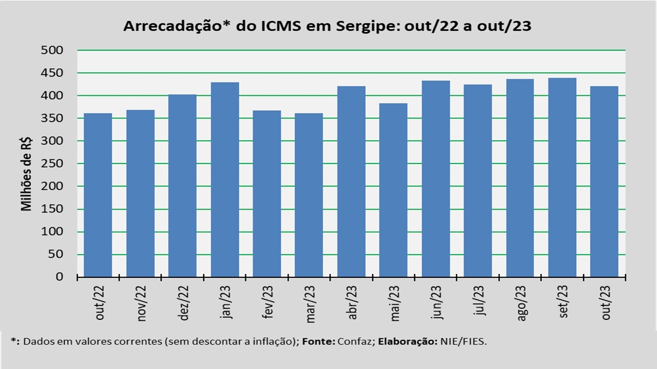Arrecadação do ICMS em Sergipe – outubro 2023 | |