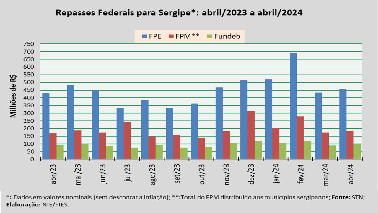 Análise realizada pelo Núcleo de Informações Econômicas da Federação das Indústrias do Estado de Sergipe (FIES), com base nos dados da Secretaria do Tesouro Nacional (STN), indicou que o repasse do Fundo de Participação dos Estados (FPE) para Sergipe, em abril do ano corrente, foi cerca de R$ 457,4 milhões.