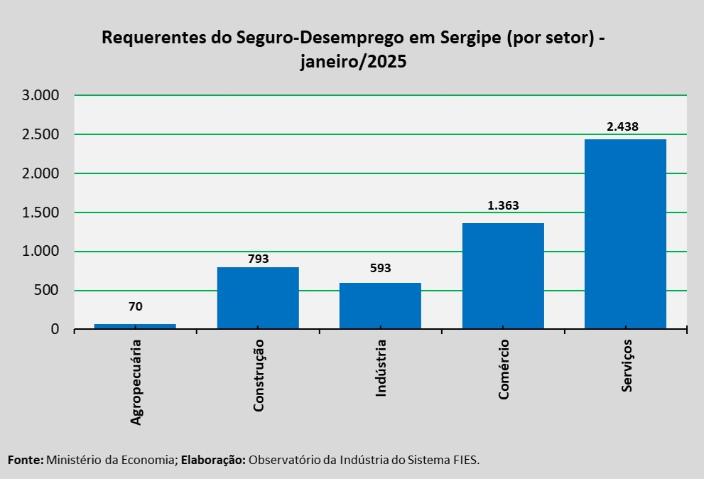 Análise realizada pelo Observatório da Indústria do Sistema FIES, com base nos dados do Ministério do Trabalho e Emprego, revelou que, em janeiro último, 5.257 trabalhadores solicitaram o seguro-desemprego em Sergipe.